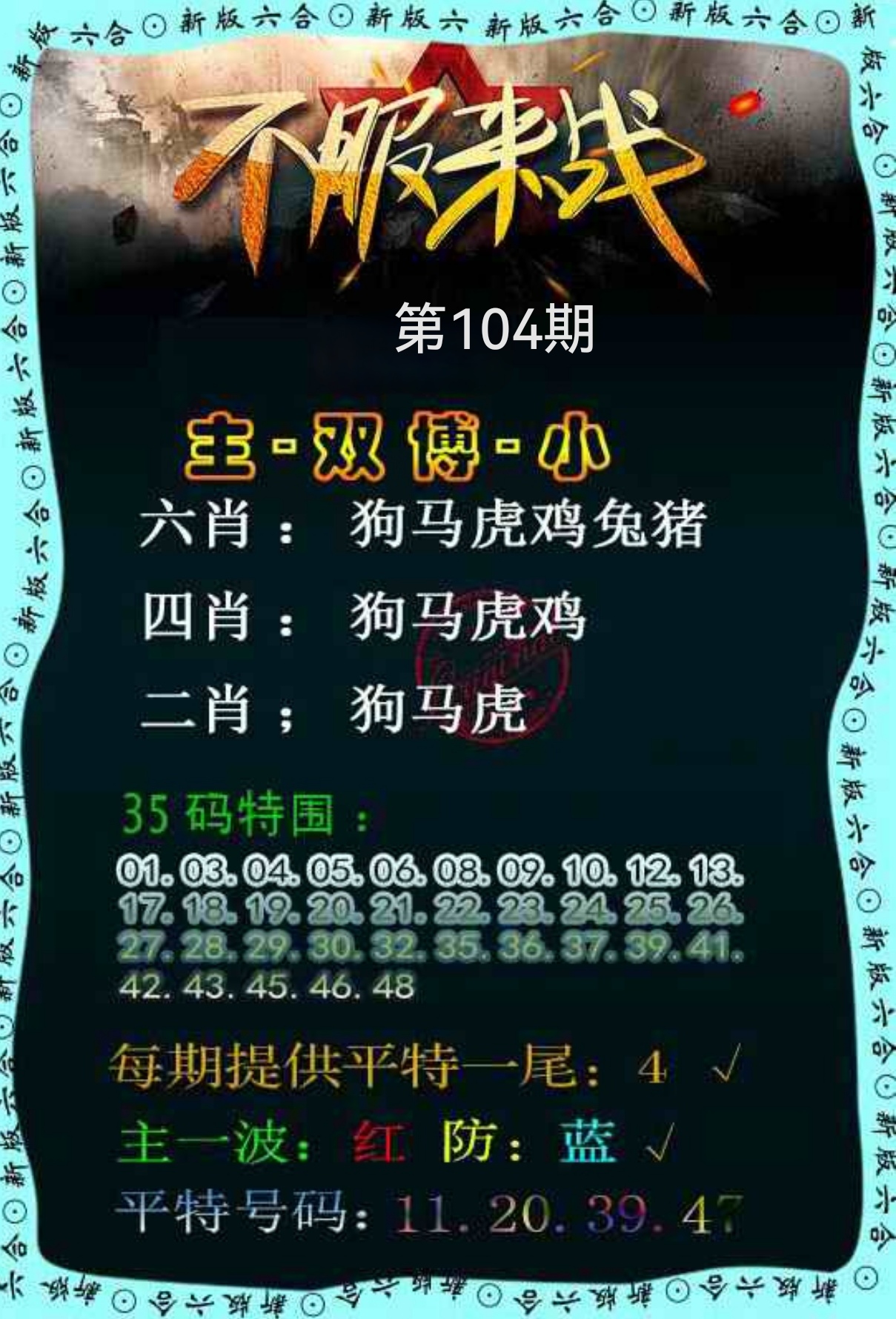 104期7肖中特:龙鸡狗蛇虎羊兔